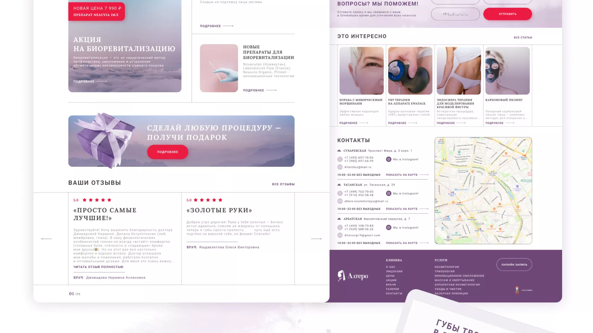 Сеть клиник эстетической косметологии «Алтеро» в Кеми — это квалифицированные специалисты, новейшее оборудование, качественные препараты, эффективные и разнообразные методы лечения, индивидуальный подход с учетом физиологических особенностей и пожеланий пациента, доступные цены.